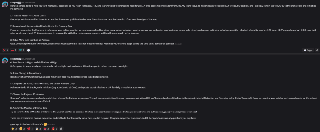 Schaue dir meinen Beitrag zum Thema Goldfarmen im Last War Discord an.