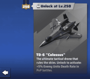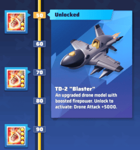 Die Drohne (Tactical Drone) wird freigeschaltet, sobald du Stage 38 im Kampagnenmodus abgeschlossen und den Helden Monica gerettet hast. Danach erscheint das Drohnenzentrum in deiner Stadt und du kannst die Drohne nutzen.